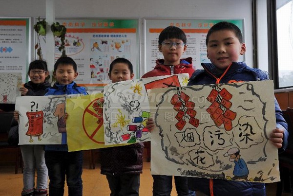 图为蜀山区开展“做文明市民、不燃放烟花爆竹” 的倡议活动,三里庵街道竹荫里社区的小朋友们以绘画方式呼吁市民禁放鞭炮,保护环境,杜绝燃放烟花爆竹而发生安全事故时的场景。