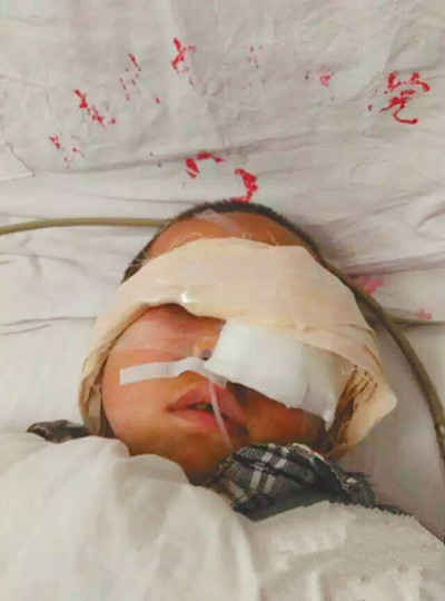 约一个小时后,黎国跃听说侄子被烟花炸伤了,急忙跑向出事地点,结果看到孩子的左眼血肉模糊。黎国跃急忙叫来家人,将孩子送往黔南州中医院治疗。医生称,孩子眼球已经爆裂,眼睑颊骨粉碎性骨折,鼻梁轻微骨折。